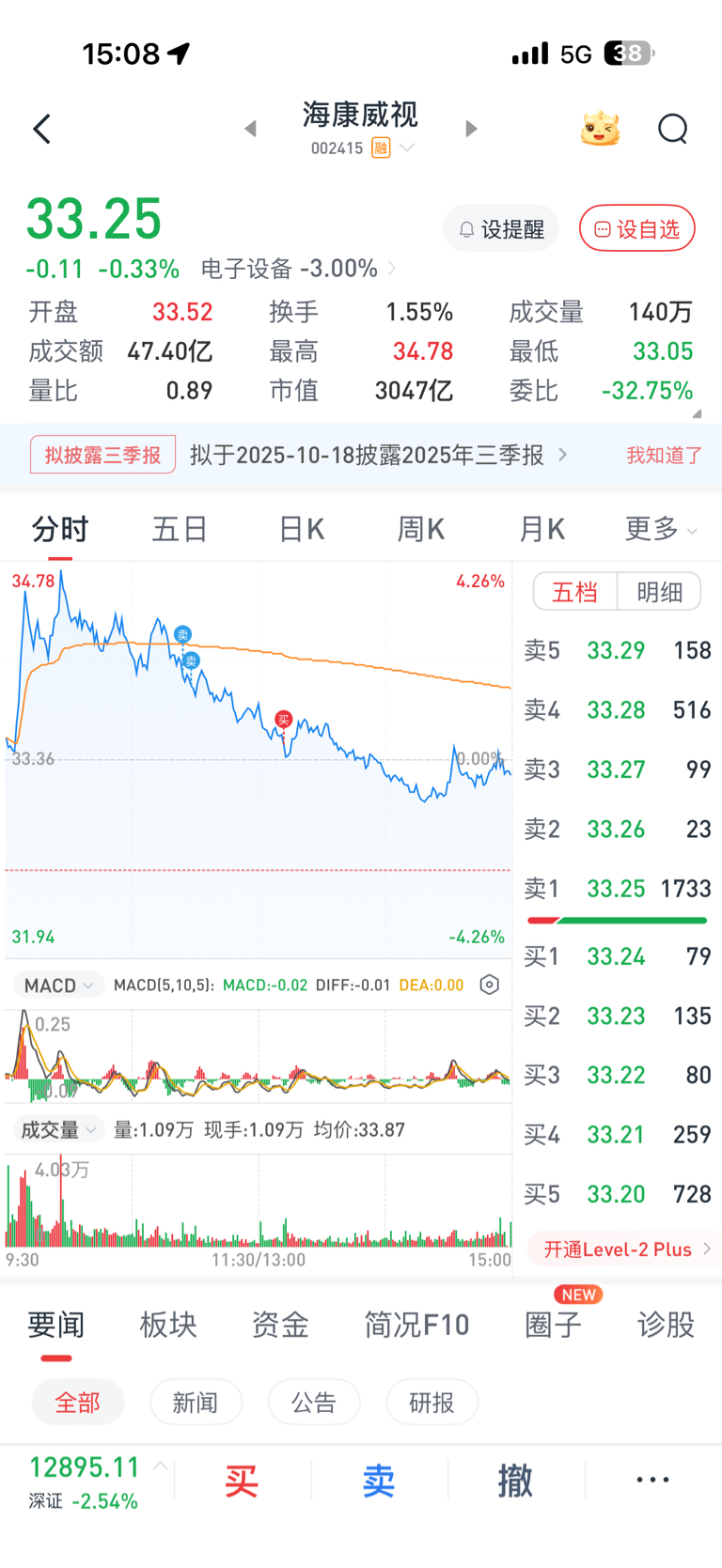 $海康威视(SZ002415)$ 前面有大盘托底,没敢高点卖,后面卖了也不该进来这么早的,就因为早回来了半小时,白白损失几百元,也不知道明天如何