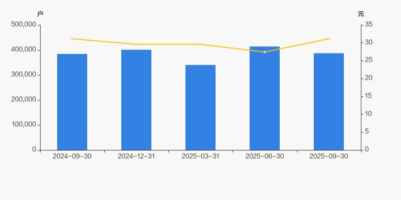 2024年9月30日至今,公司股东户数有所增长,区间涨幅为0.80%。2024年9月30日至2025年9月30日区间股价上涨0.05%。