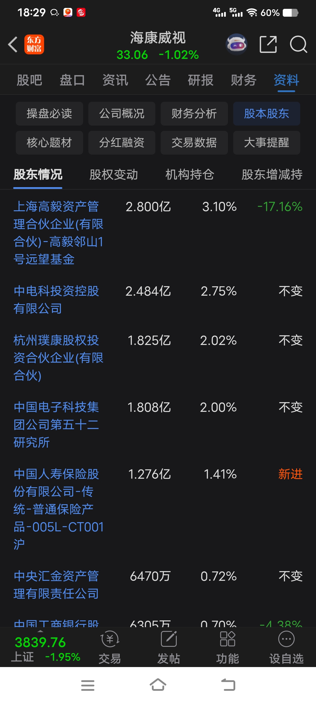 疯柳就一个小丑,不拉S的货,又走掉了5800w股,重仓持股4-5年了,坑坏了跟随他的私募基金的投资人,希望已经全部割肉清仓走人,值得注意的是人保新进1.276亿股,大赞