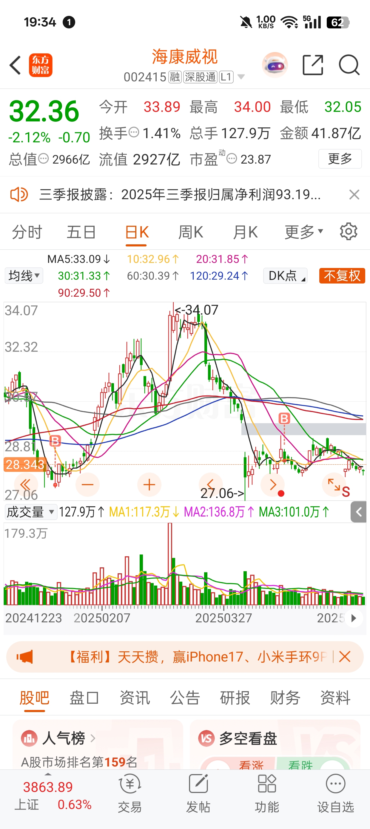 $海康威视(SZ002415)$ 怎么都洗不走我,毕竟我等了三年,三年才14的收益就是搞笑的主力