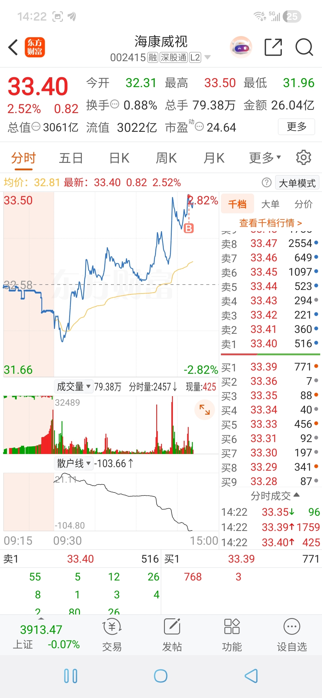 $海康威视(SZ002415)$ 我来了,明天给两个点溢价就跑