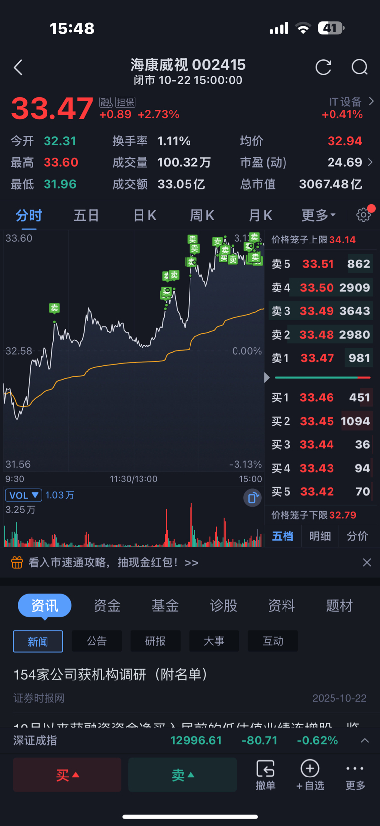 $海康威视(SZ002415)$ 明天跌下来我再接回来!!