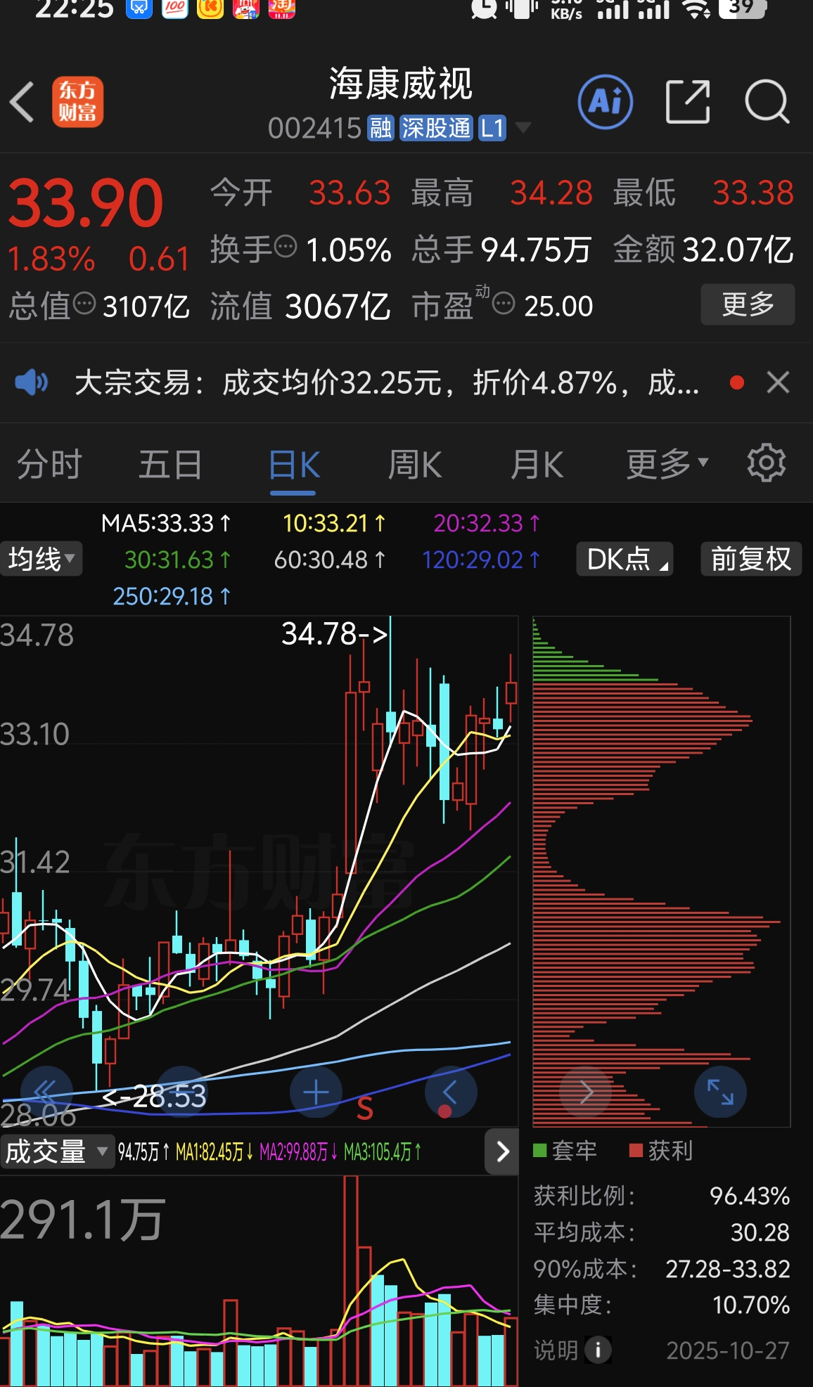 $海康威视(SZ002415)$ 主力筹码没走!拿稳准备起飞!