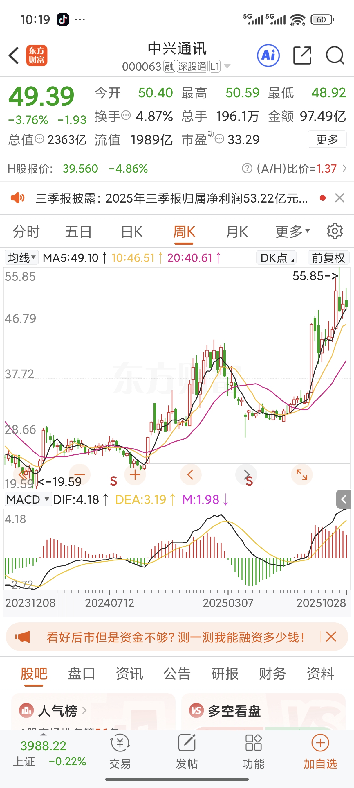 A股这是一个什么市场,看看中兴通讯的季报,大幅下跌,然后股价三季度跑赢海康50%
