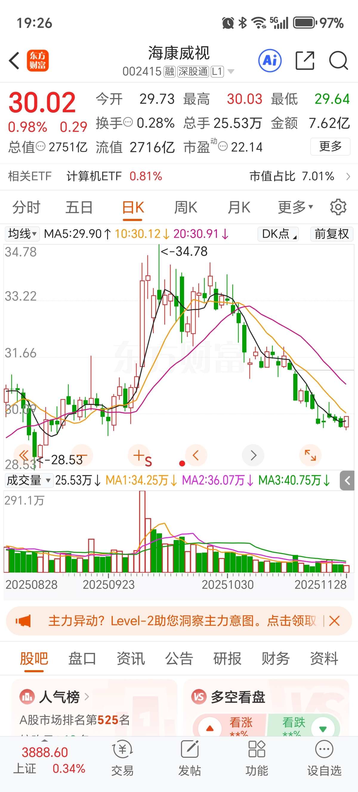 $海康威视(SZ002415)$ 29.66元建底仓,研究你能跌到哪去,我就不信永远轮不到你涨