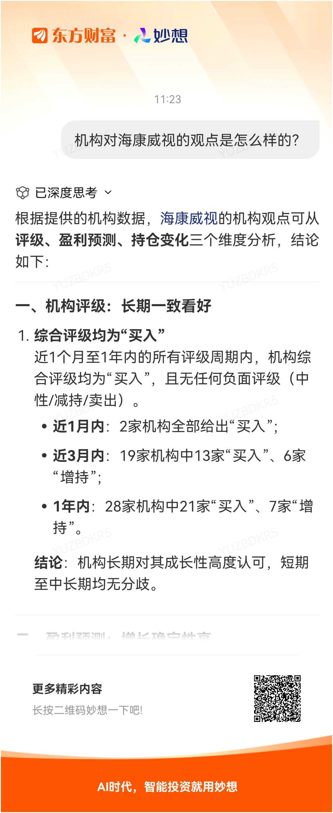 #@妙想,你怎么看?# 妙想一下:机构对海康威视的观点是怎么样的?