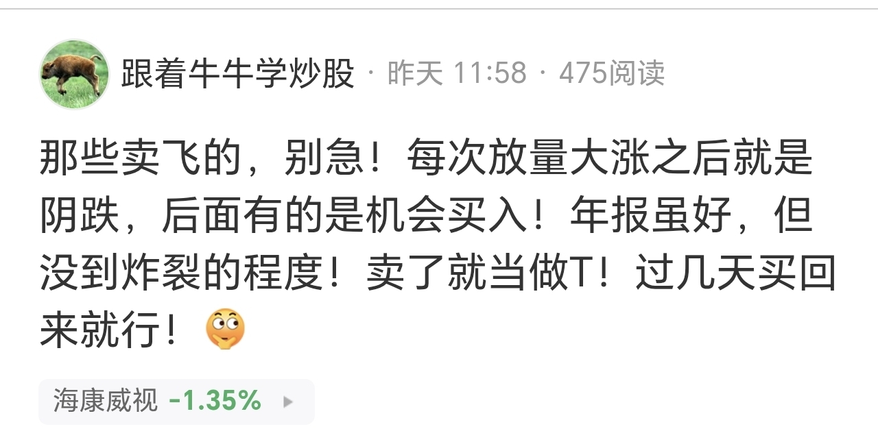 $海康威视(SZ002415)$ 兄弟们,出来干活了!目前32.12!!!抄底!!干它呀的!下午V起来!!