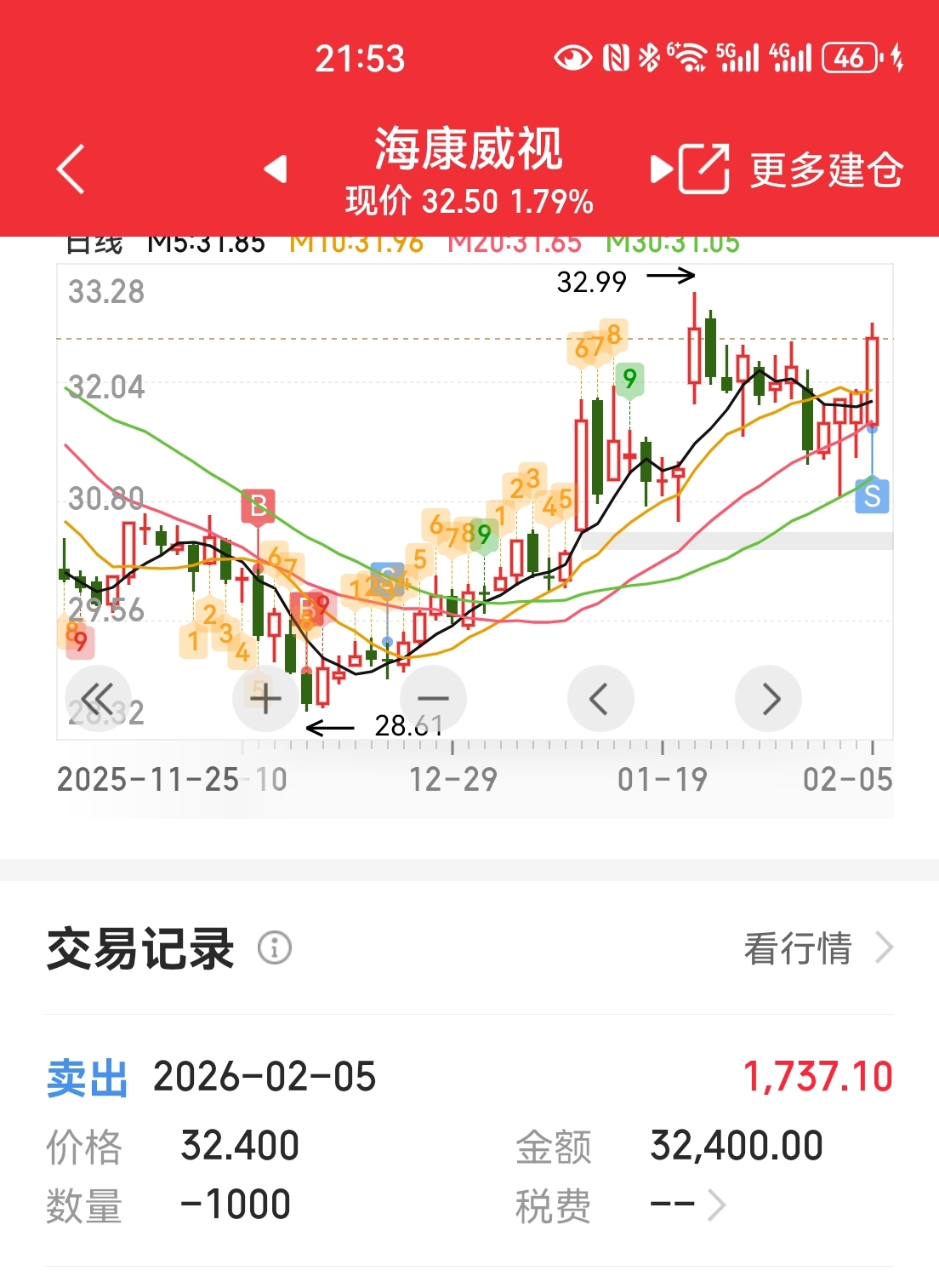 $海康威视(SZ002415)$ 今天牺牲1000股筹码,成功的把主力骗了!