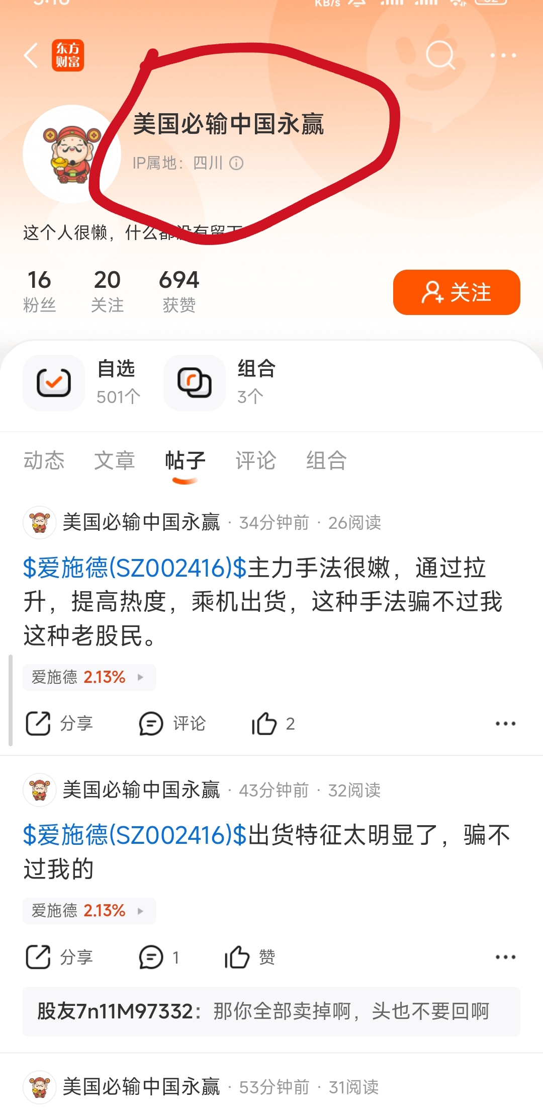 $爱施德(SZ002416)$ 拉黑这个空狗,玩不起不要玩