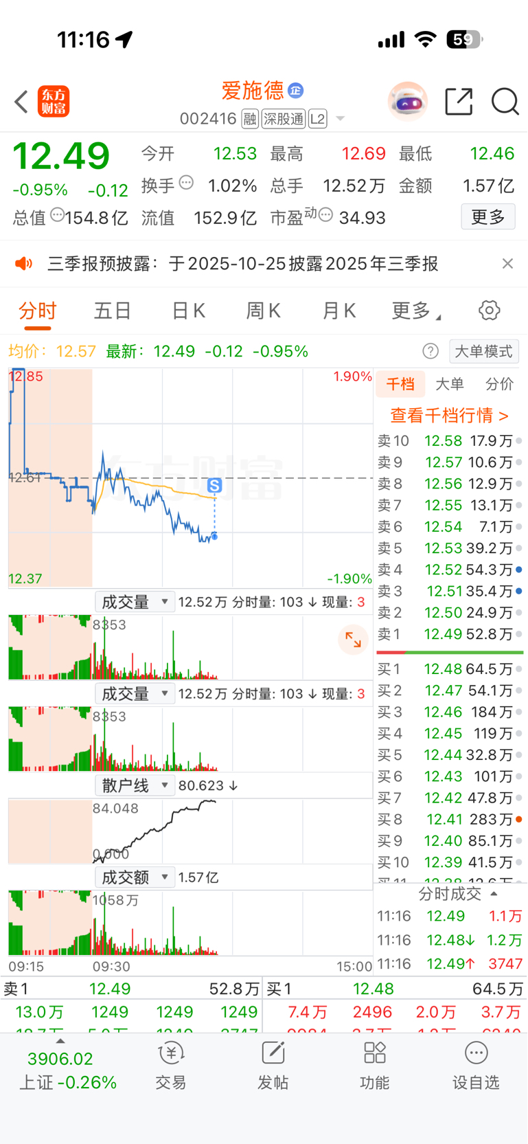$爱施德(SZ002416)$ 顶部区域了。先走为敬
