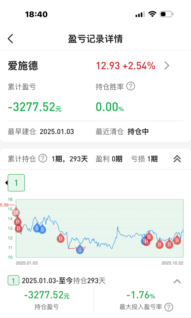 $爱施德(SZ002416)$ 熬了293天还亏3000多明天能让我吃口肉不