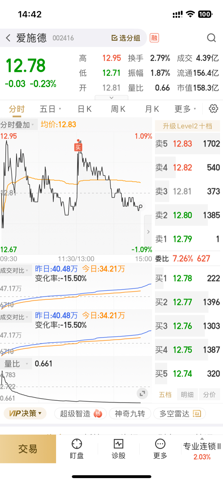$爱施德(SZ002416)$ 不好意思是我买蹦的
