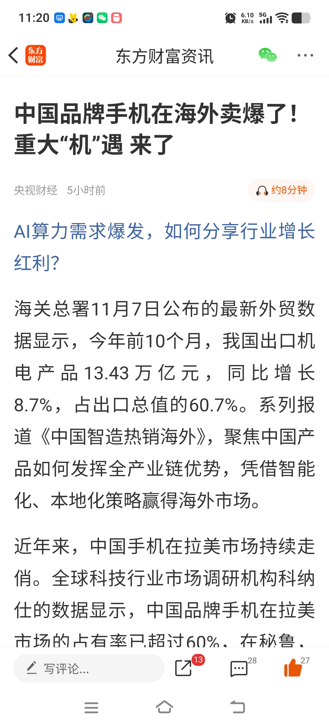 $爱施德(SZ002416)$ 央视报道中国手机在国外卖爆了@爱施德