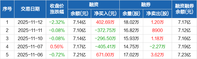 爱施德:融资净买入402.69万元,融资余额7.14亿元(11-12)