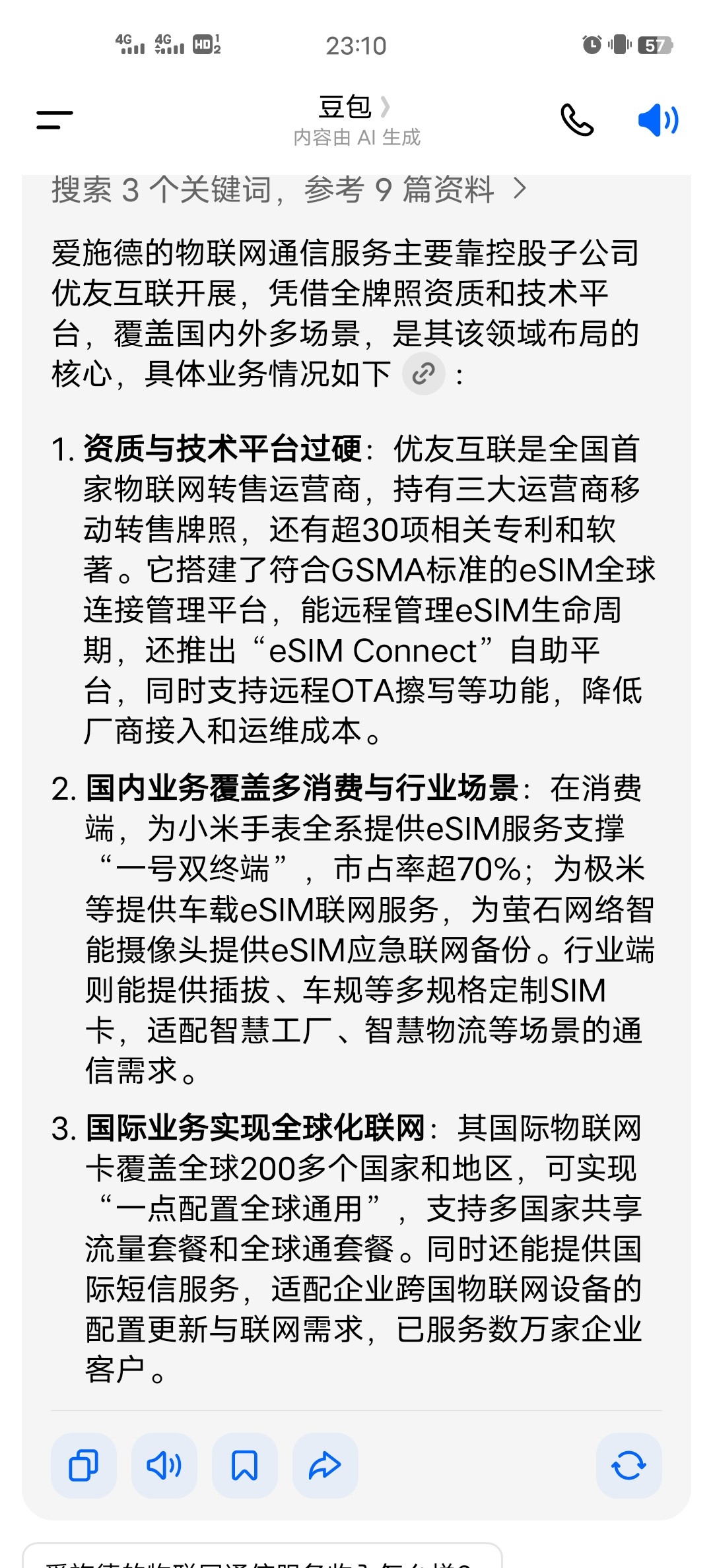 爱施德最大受益应该是这个业务。我就是从事运营商业务者,当今社会手机号,网络,宽带都趋于饱和状态下,什么业务会是运营商未来发展趋势呢?现在每个运营商都在布局物联网,这个蛋糕非常大,就是网线后端的逻辑,例如摄像头,例如多媒体教育,例如AI,例如智能家居,例如物流,例如医院等等,都会成为一根网线的后端业务。如果能买到优友互联才是更大赢家。