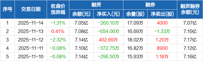 爱施德:融资净偿还260.1万元,融资余额7.05亿元(11-14)