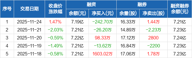 爱施德:融资净偿还242.7万元,融资余额7.19亿元(11-24)
