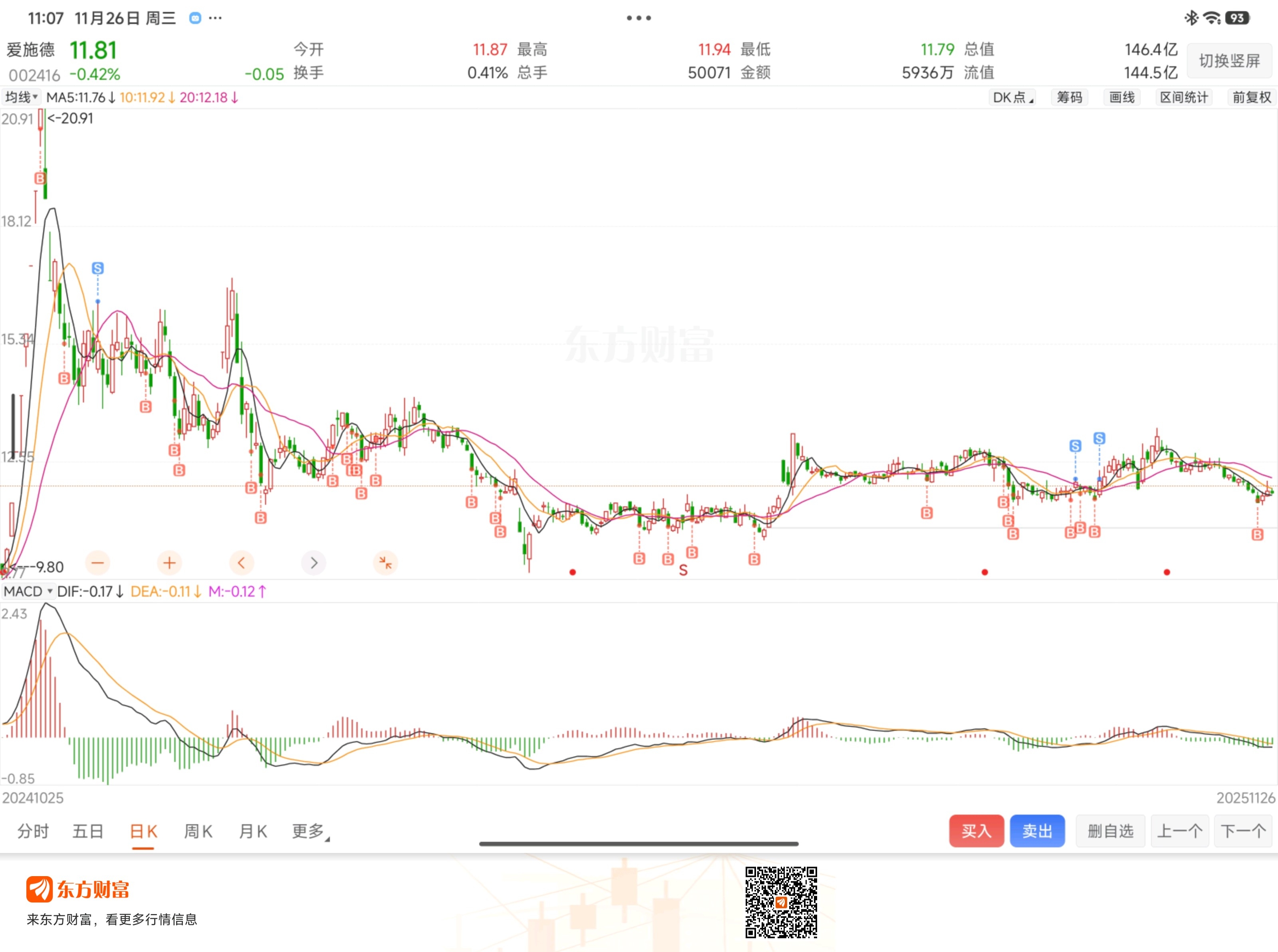 $爱施德(SZ002416)$ 这破股请大家看看我从去年11月入手当时20.91一直持续到现在我还亏钱,爱施德你是真的对不起你的股民