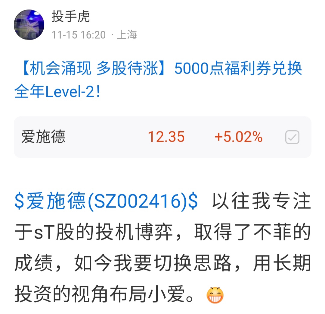 $爱施德(SZ002416)$ 年底,年底我是全面开花呀。