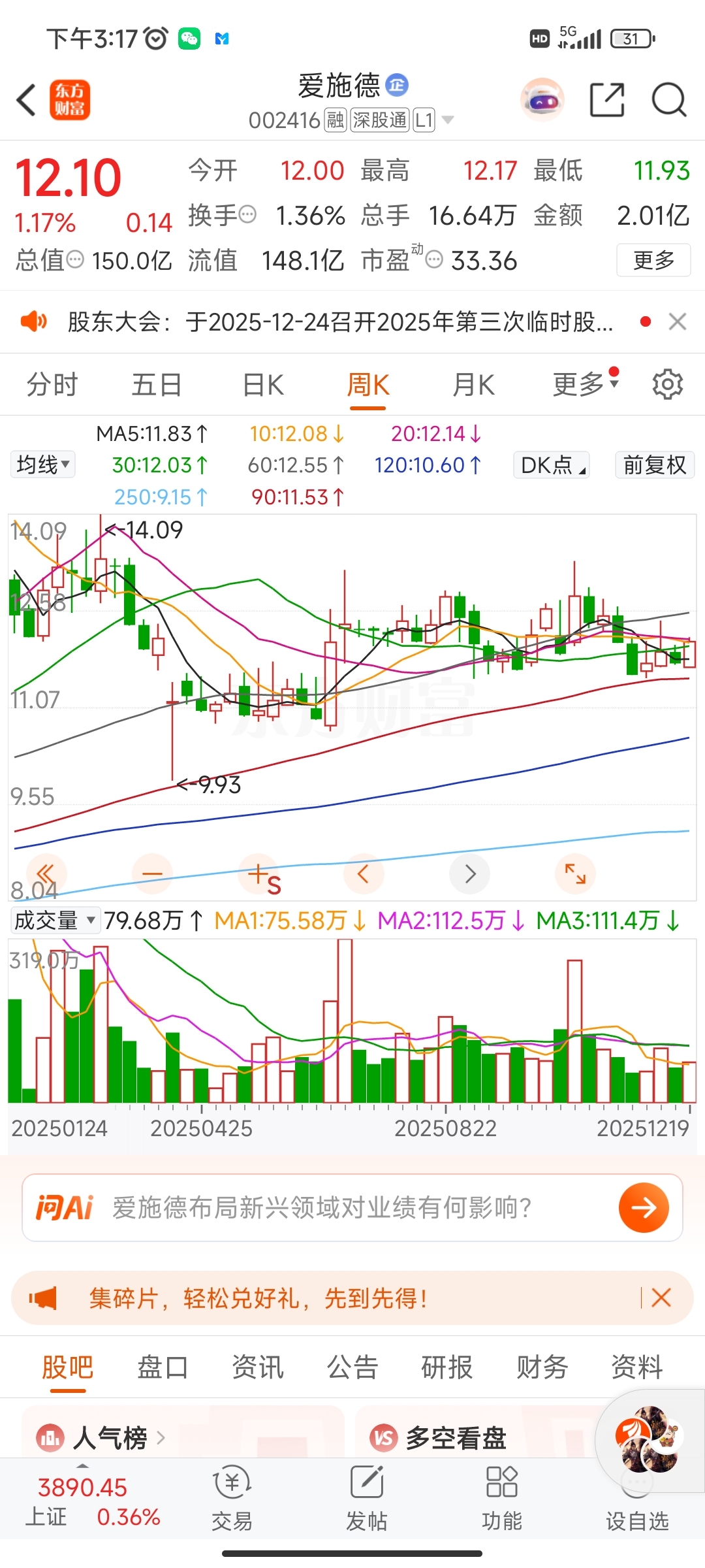 $爱施德(SZ002416)$ 看周线下周必大涨,估计有20个点的肉肉吃,大家坐好扶稳等着吃大肉吧