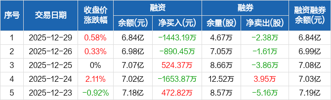 爱施德:融资净偿还1443.19万元,融资余额6.84亿元(12-29)