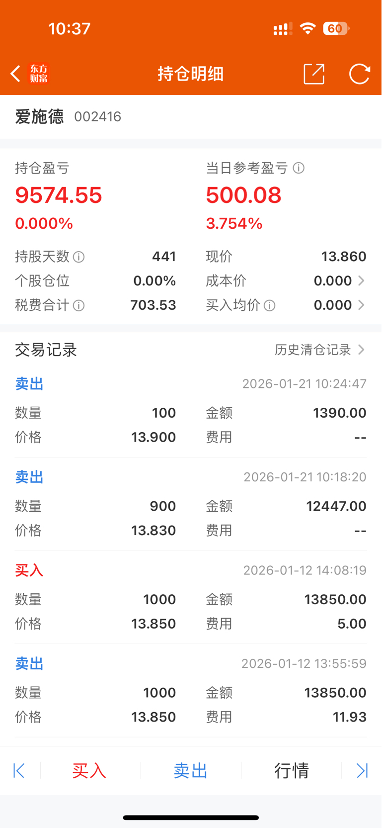 $爱施德(SZ002416)$ 拿了440多天,就赚了这么一点,真的难受