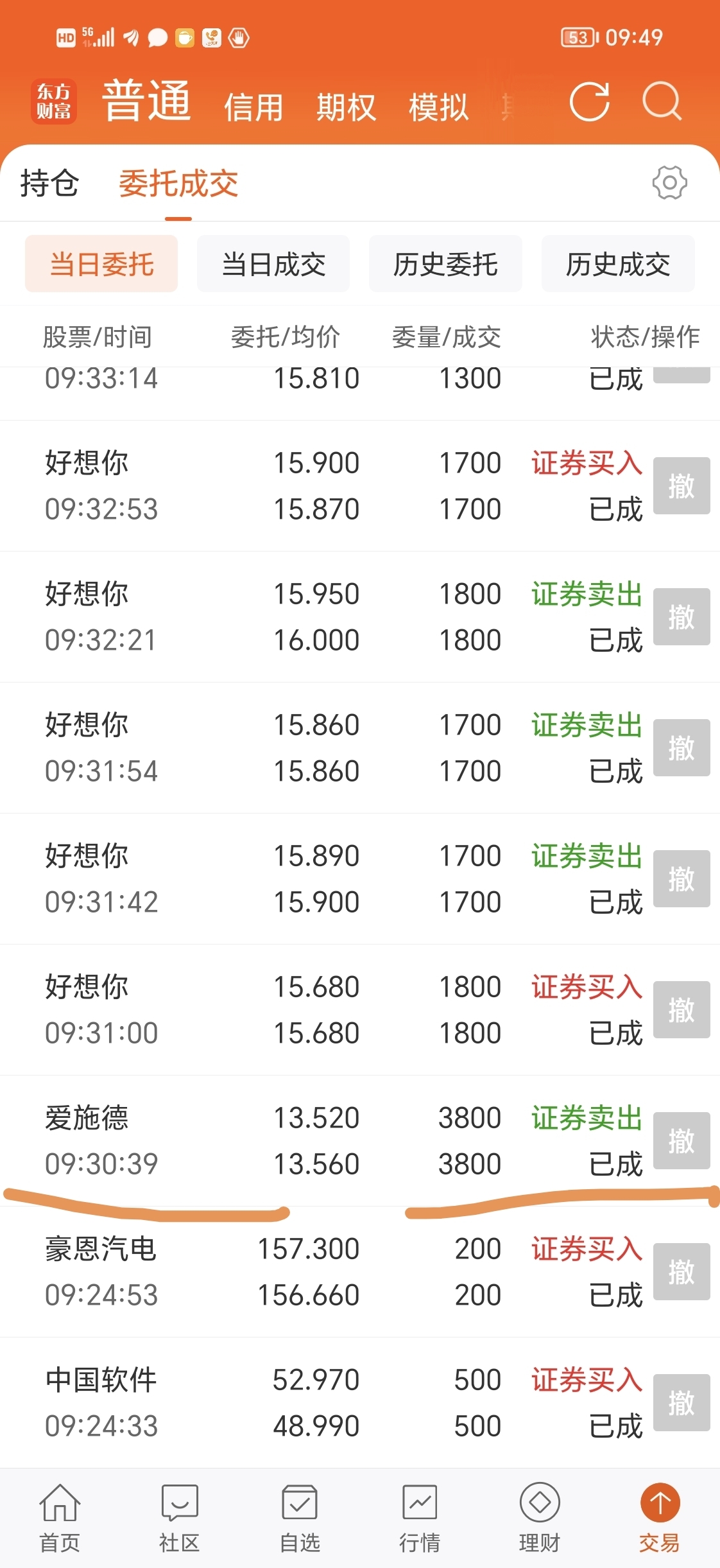 今天负数卖了爱施德,本来今天竞价买了中国软件,好想你高位卖了挺完美的,但是我总觉