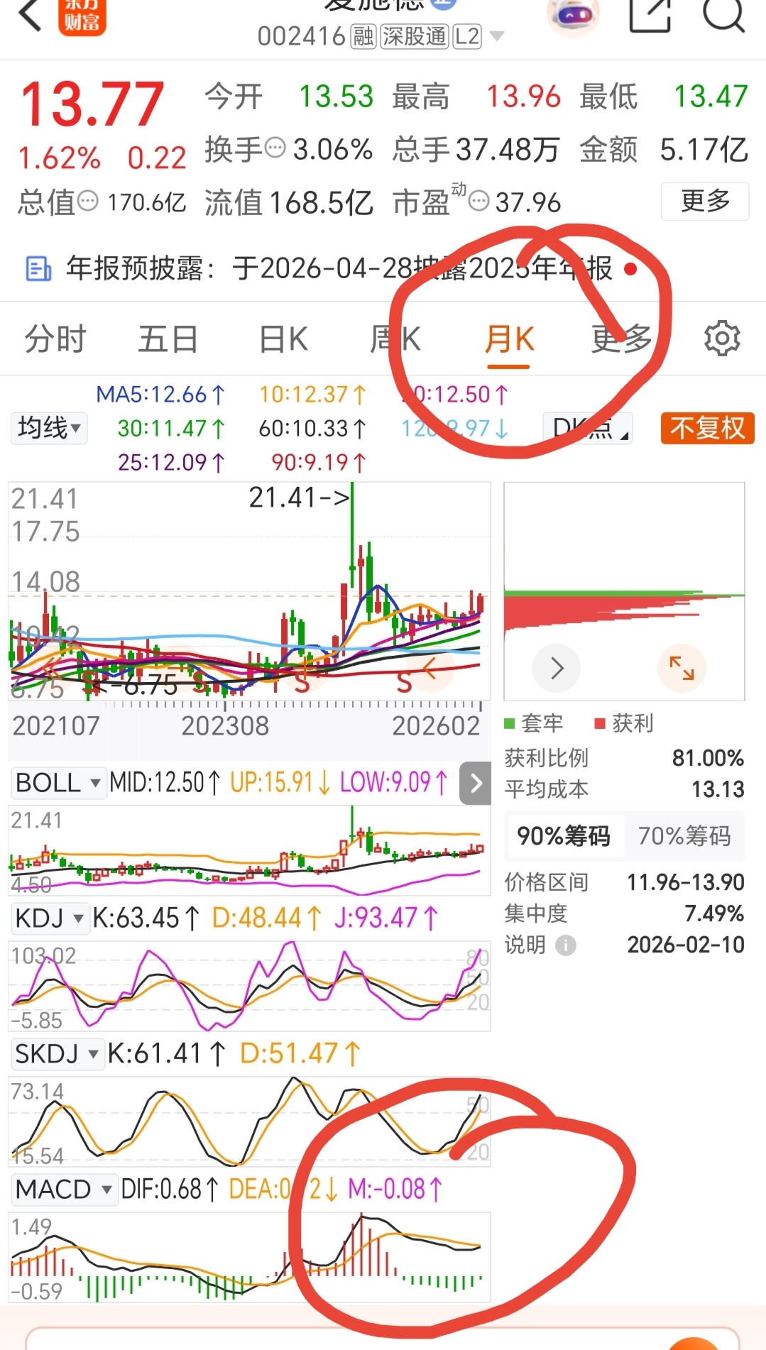 $爱施德(SZ002416)$ 还有七天。谁敢卖