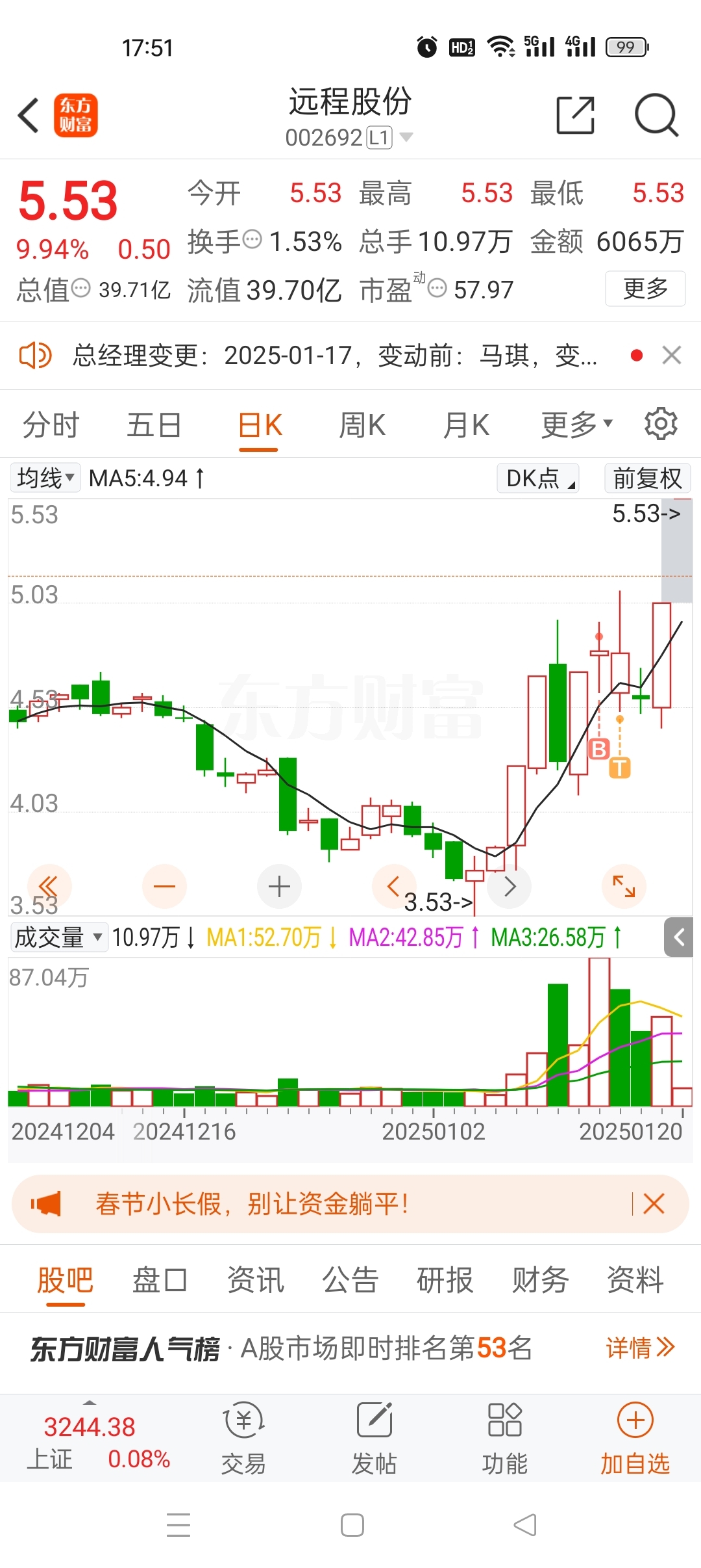 温馨提示: 1.根据《证券法》规定,禁止编造、传播虚假信息或者误导性信息,扰乱证券市场;2.用户在本社区发表的所有资料、言论等仅代表个人观点,与本网站立场无关,不对您构成任何投资建议。用户应基于自己的独立判断,自行决定证券投资并承担相应风险。《东方财富社区管理规定》