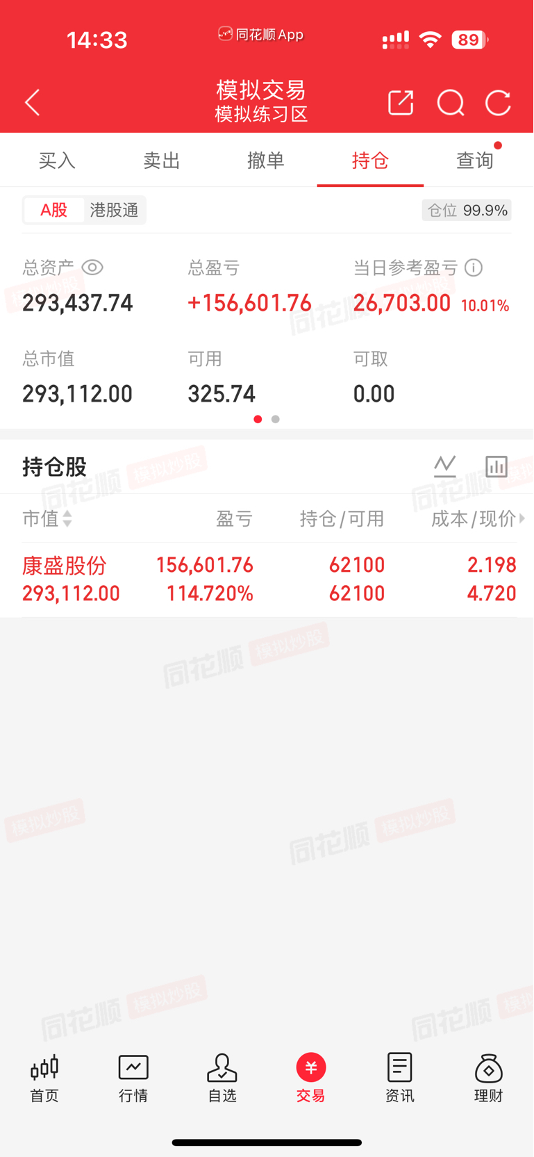 $康盛股份(SZ002418)$ 模拟盘谁不赚啊