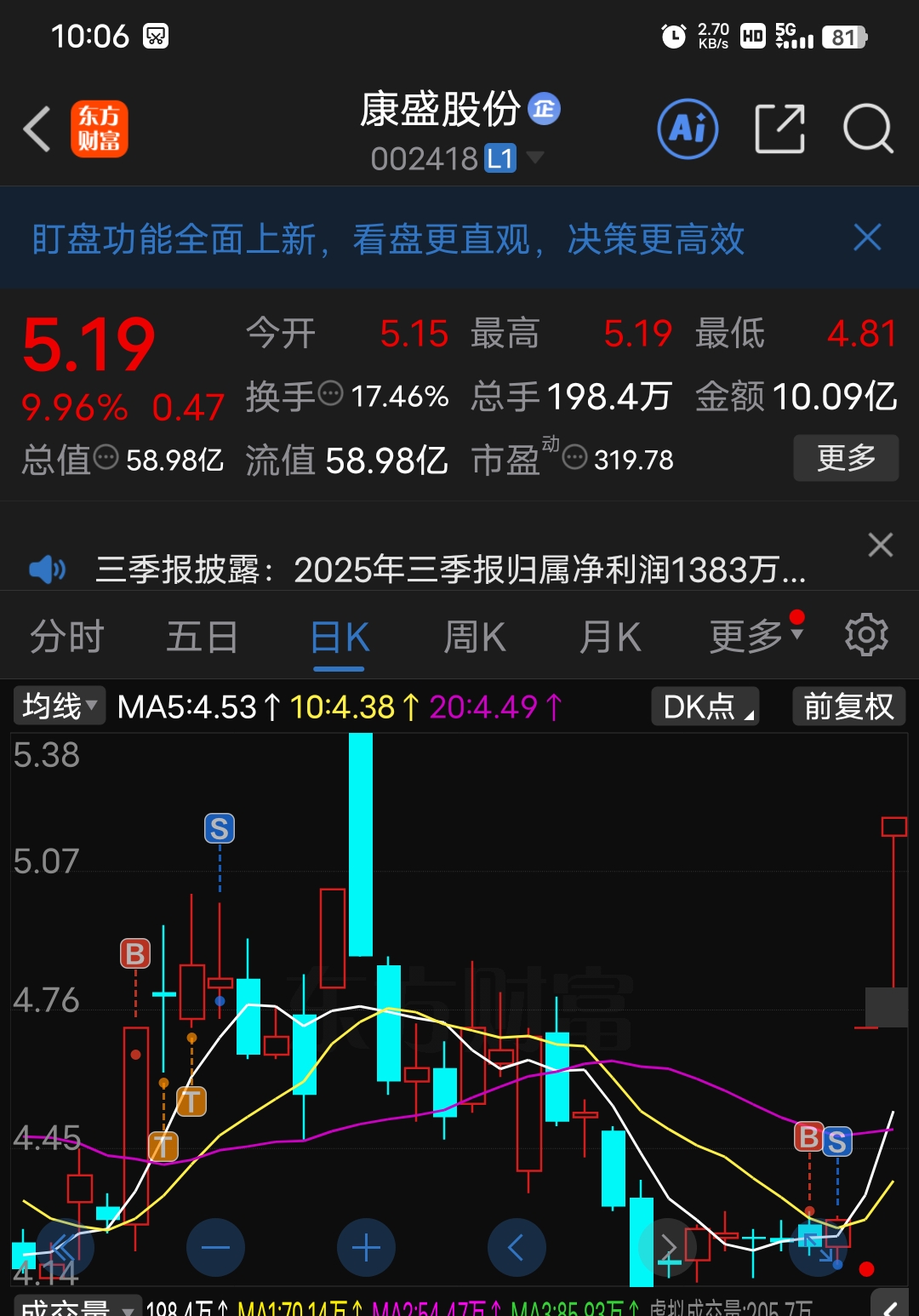$康盛股份(SZ002418)$ #强势机会# 拿不住啊!