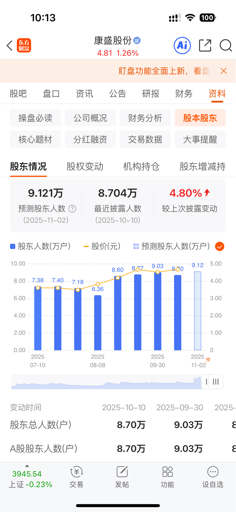 $康盛股份(SZ002418)$ 经过31号一天,预测散户增加8000人