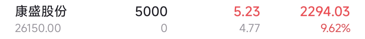$康盛股份(SZ002418)$ 今天收益9个点左右,早上有跟上的不。#炒股日记# #复盘记录#