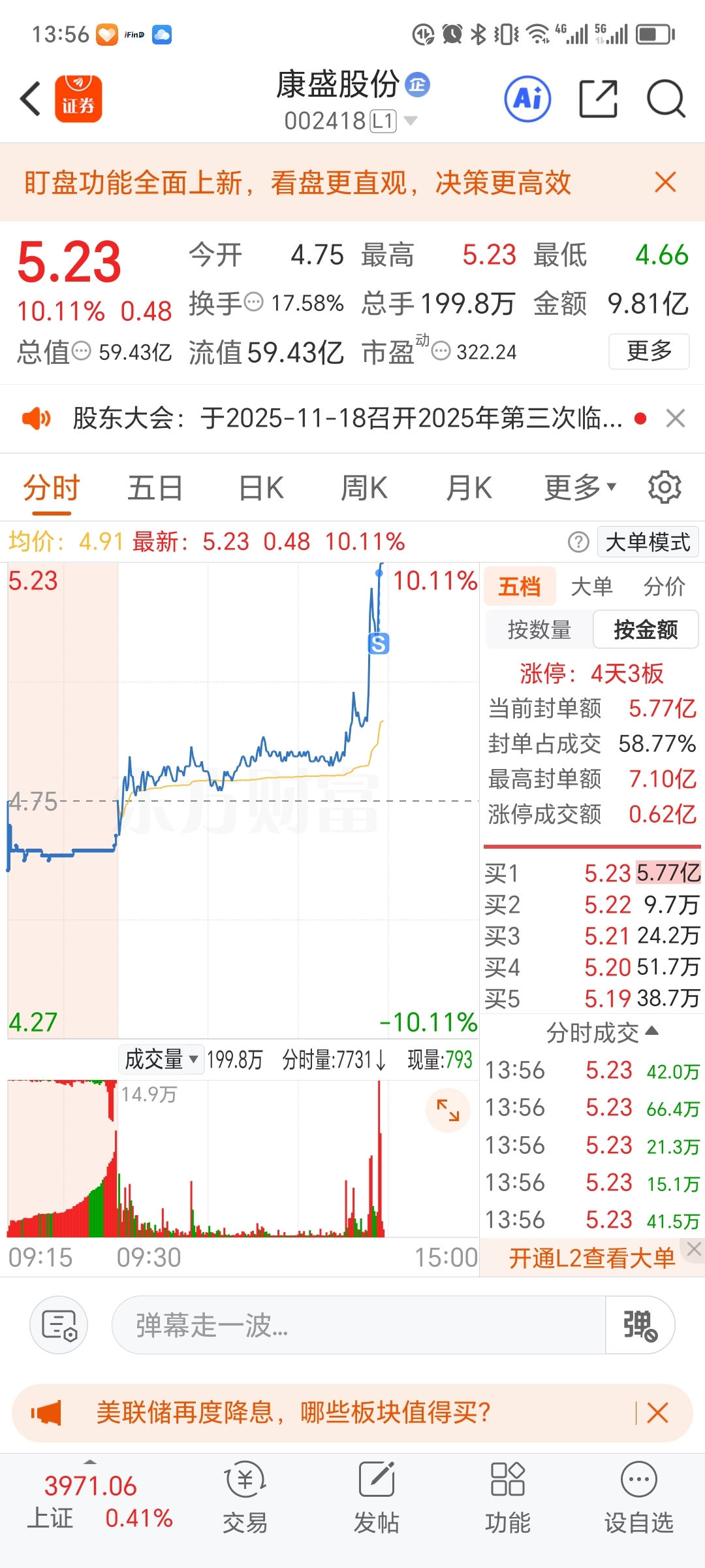 $康盛股份(SZ002418)$ 最后一下被洗出去了,真的烦,那一下为什么不直接秒 还等了一下 唉 祝车上的兄弟吃大肉吧,唉 真的烦