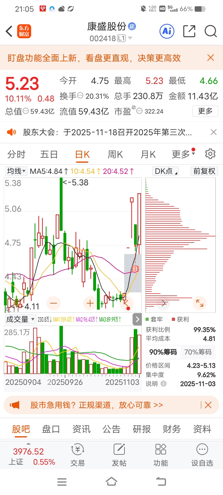 $康盛股份(SZ002418)$ 难得吃个涨停,记录一下