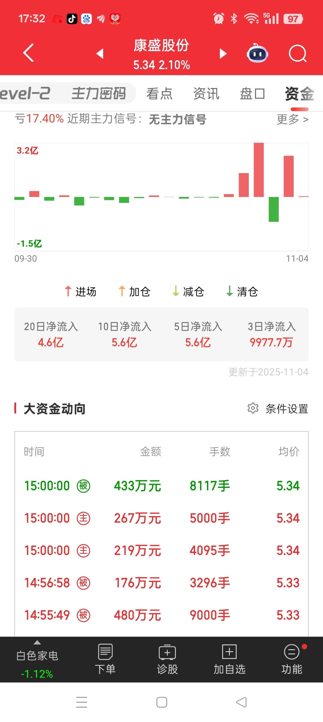 $康盛股份(SZ002418)$ 5天主力进了5个亿不会是这么简单的 看到评论唱明天稳涨了