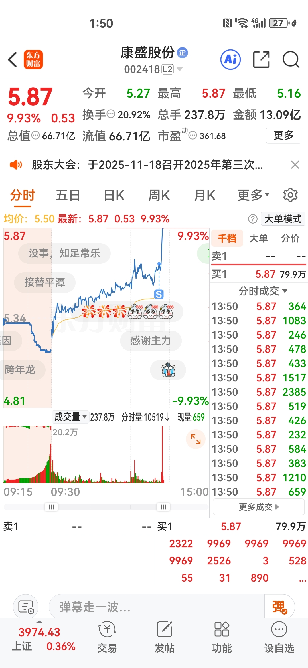 $康盛股份(SZ002418)$ 本想做个t的,妈的,不小心的,唉