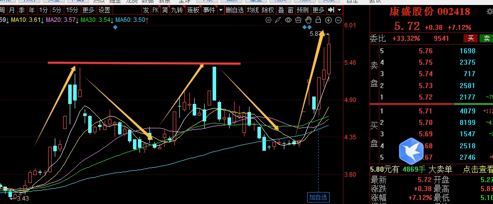 $康盛股份(SZ002418)$ 突破双顶,主升浪开启!只要上影线不收太长没问题!