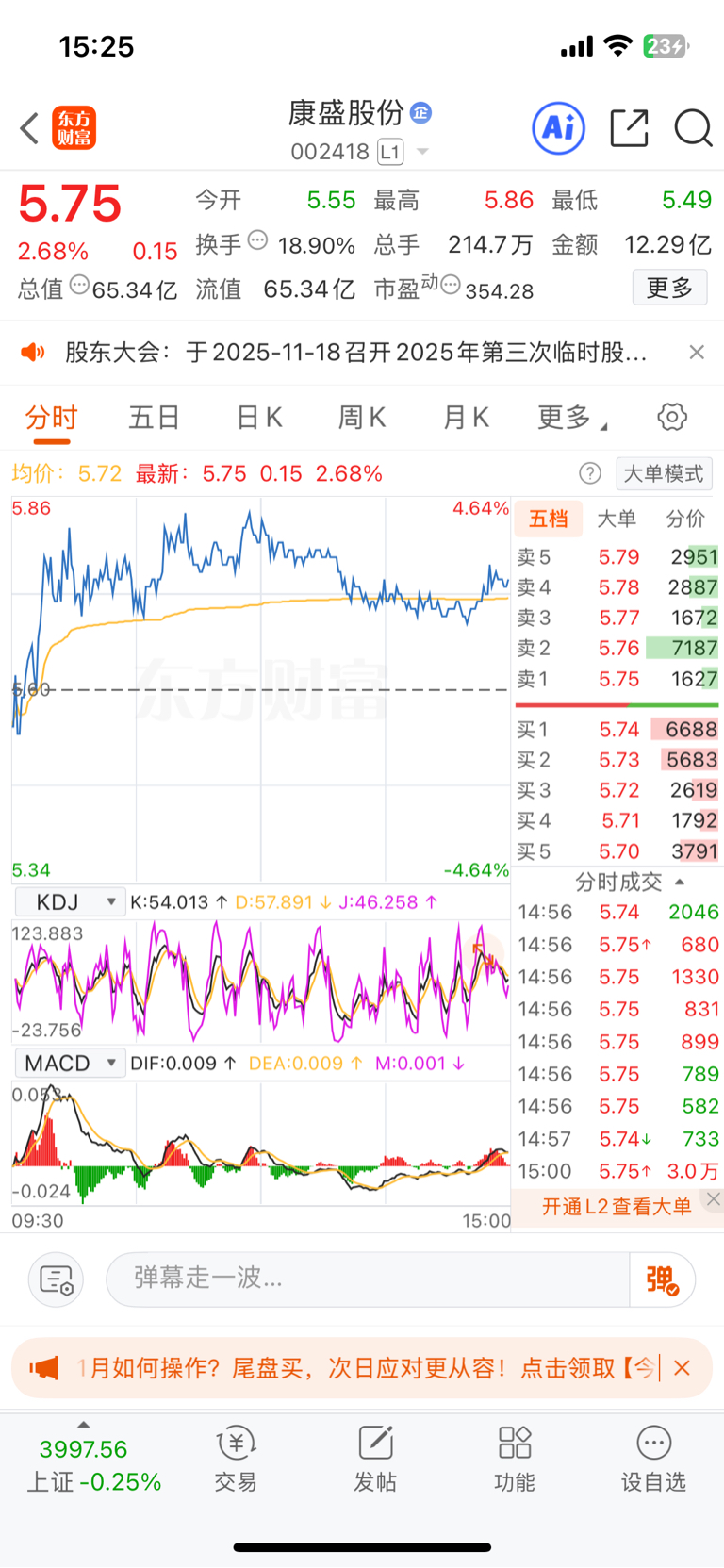 $康盛股份(SZ002418)$ 收盘时的大买盘是用来周一顶一字板?