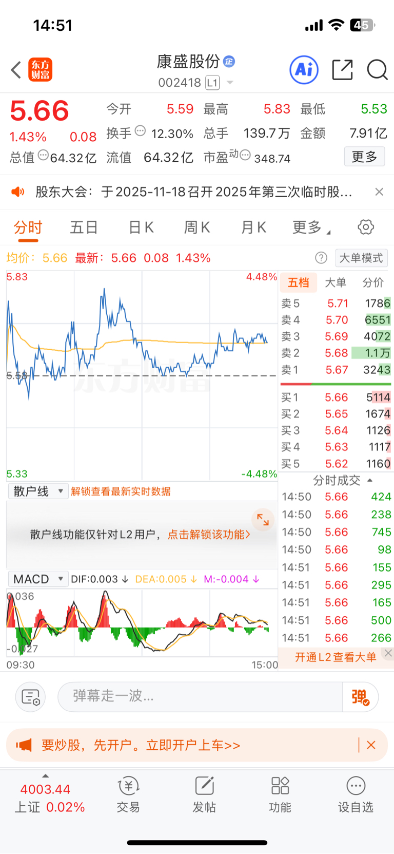 $康盛股份(SZ002418)$ 明天不会开盘冲涨停吧我才下车
