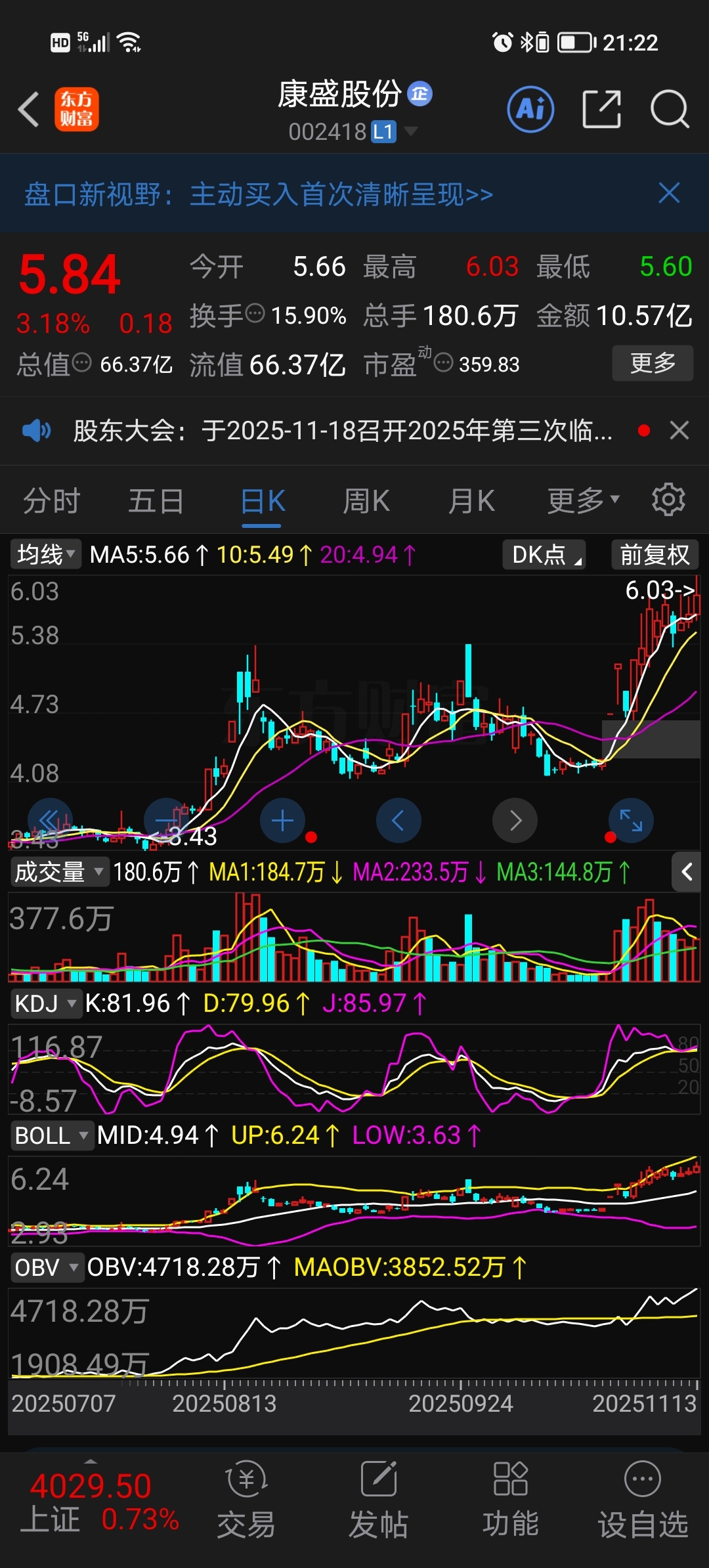 $康盛股份(SZ002418)$ 明日来个涨停板,主力洗盘结束3131