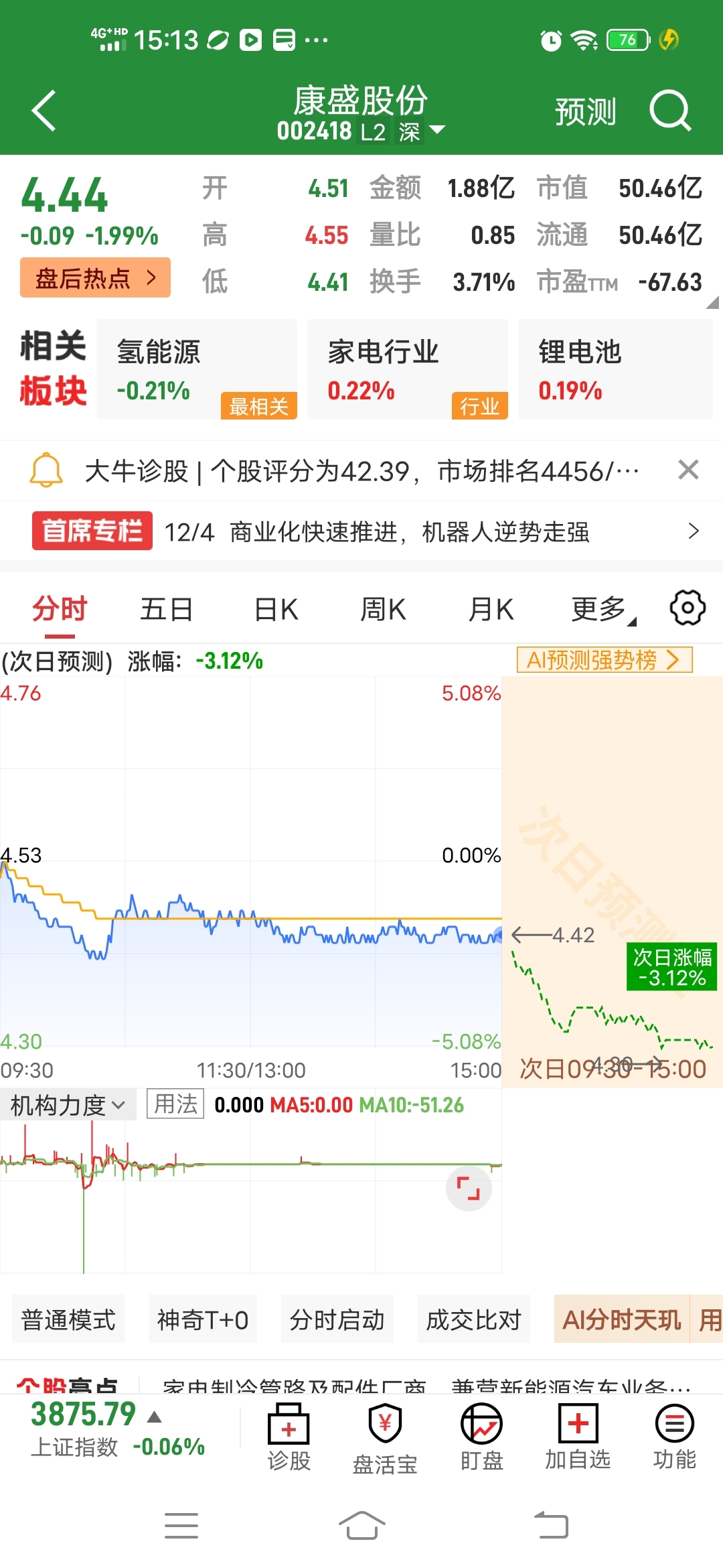 $康盛股份(SZ002418)$ 明天预测到4.3了,,,就快到4.2了