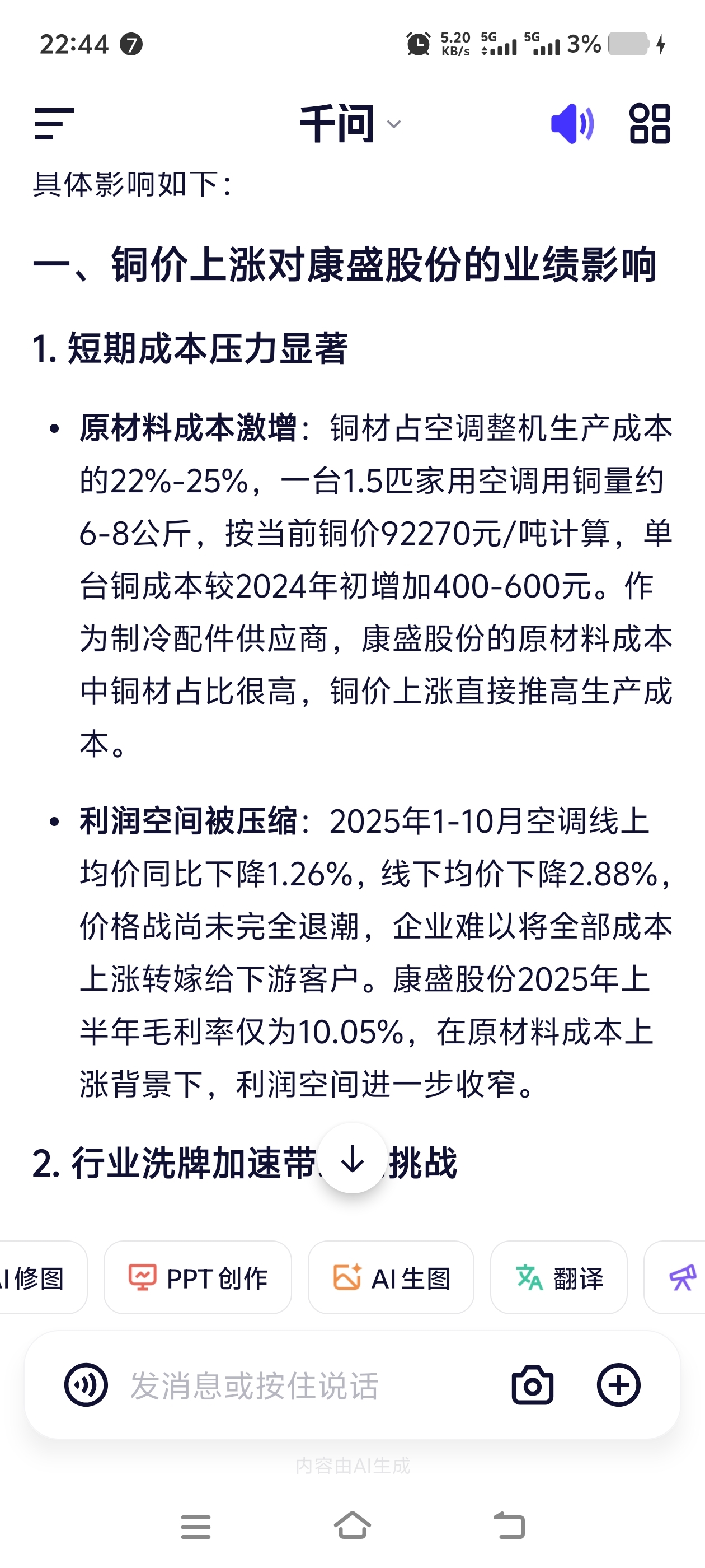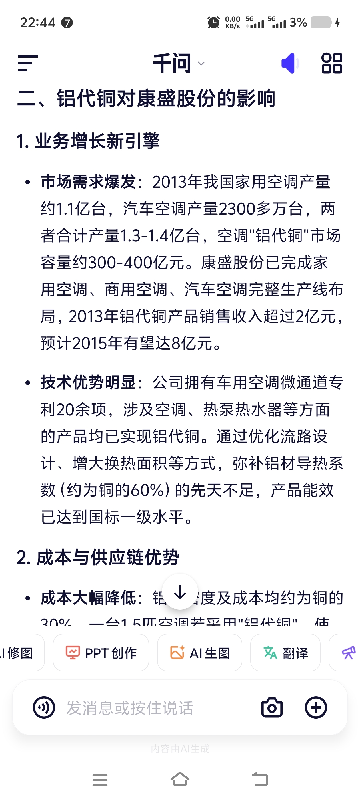 以前康盛发布过铜价上涨,利润没那么多。现在全面开始铝代铜。利润可以提升了吧,