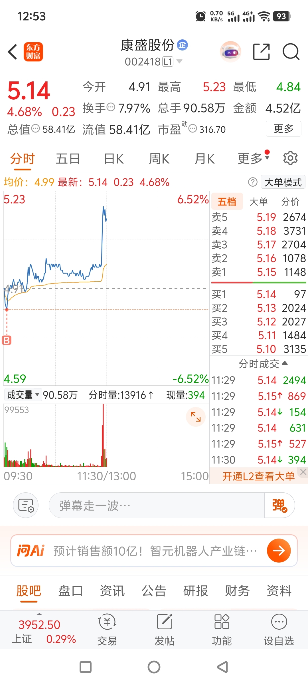 $康盛股份(SZ002418)$ 早上看了一下补了五百手