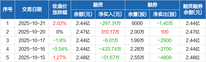天虹股份:融资净偿还297.31万元,融资余额2.44亿元(10-21)