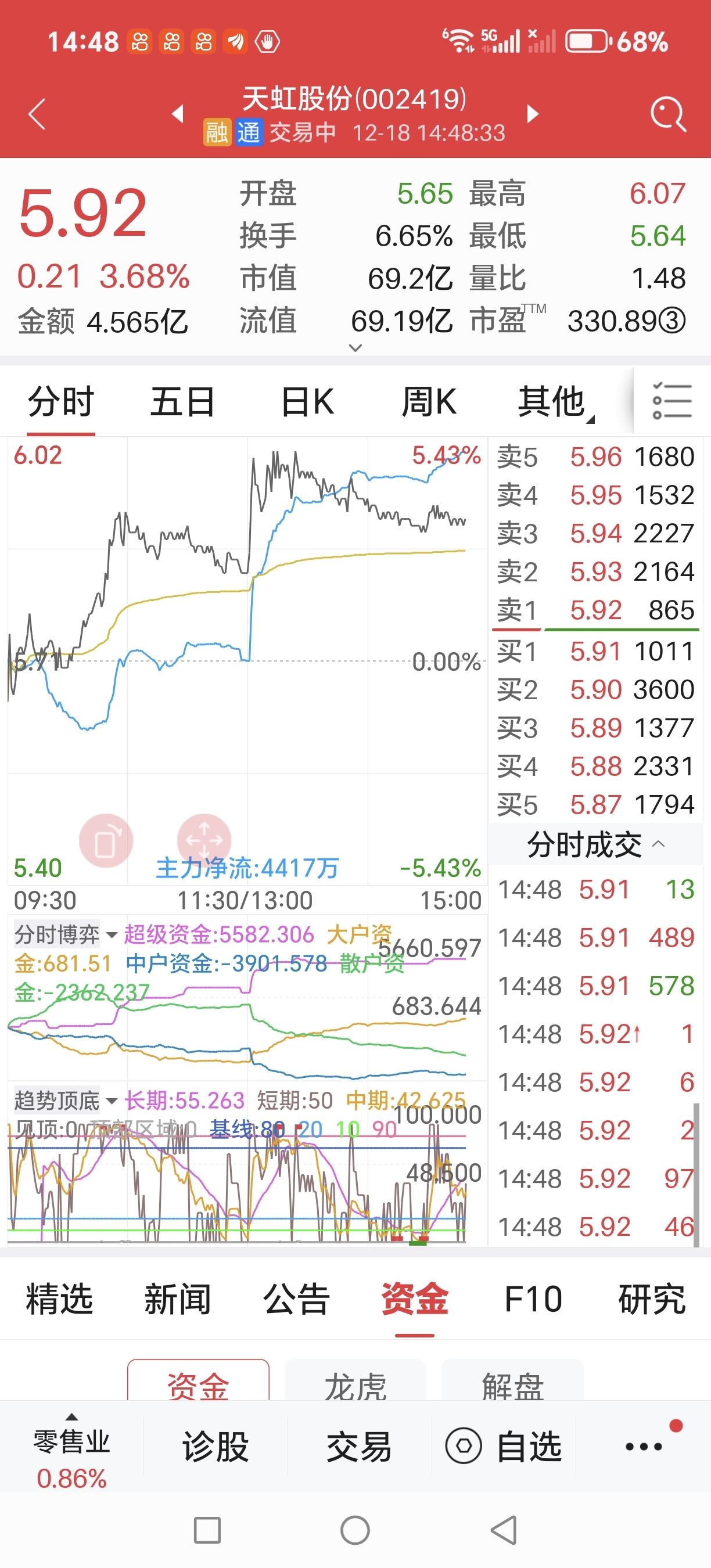 $天虹股份(SZ002419)$ 主力买入4.4千万,跟着主力买进坚定信心持有必大涨