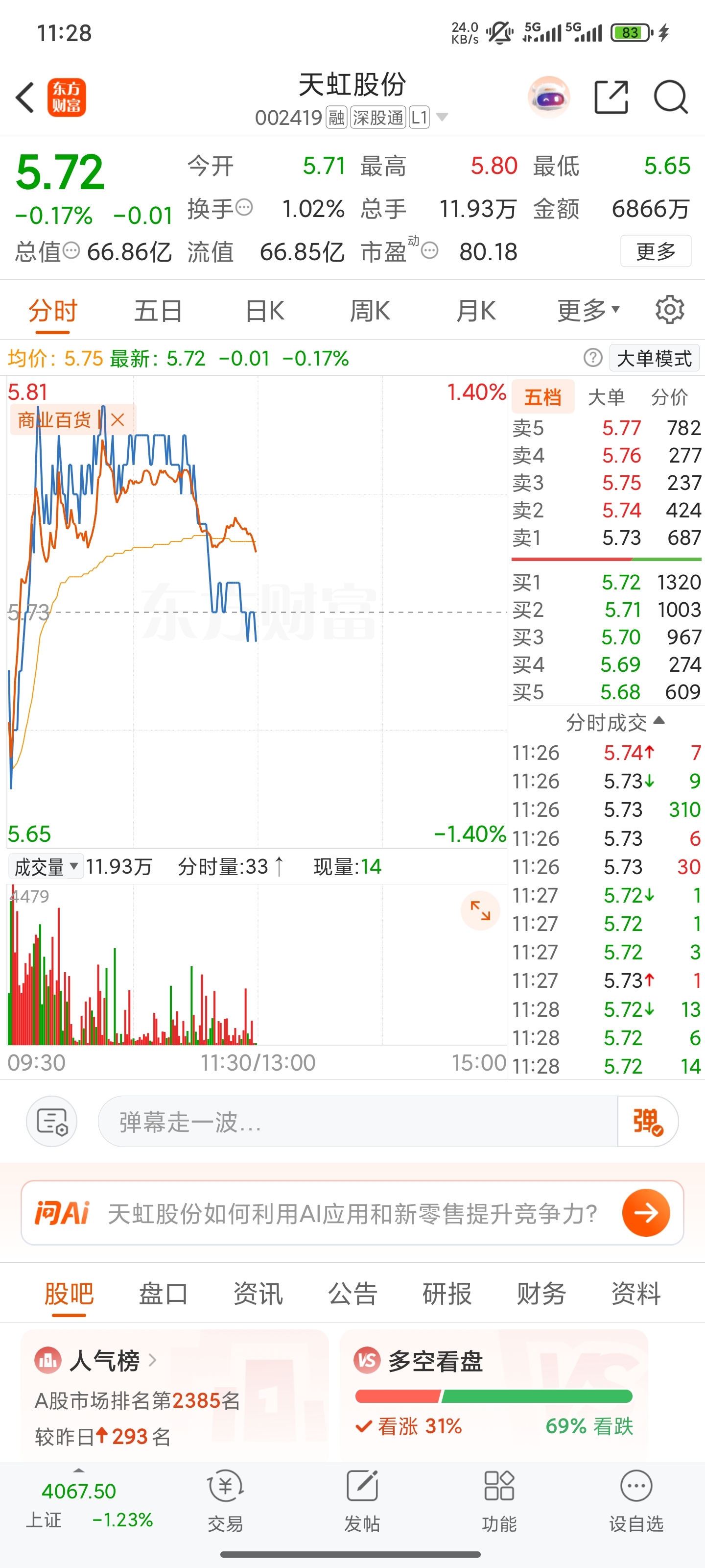 $天虹股份(SZ002419)$ 天呐,绿了绿了。