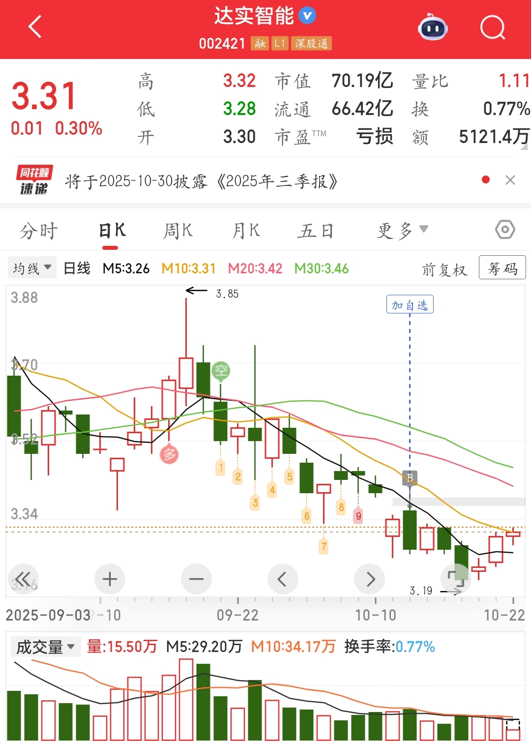 $达实智能(SZ002421)$ 3.32的本,3.33我就想跑,是不是有点没出息