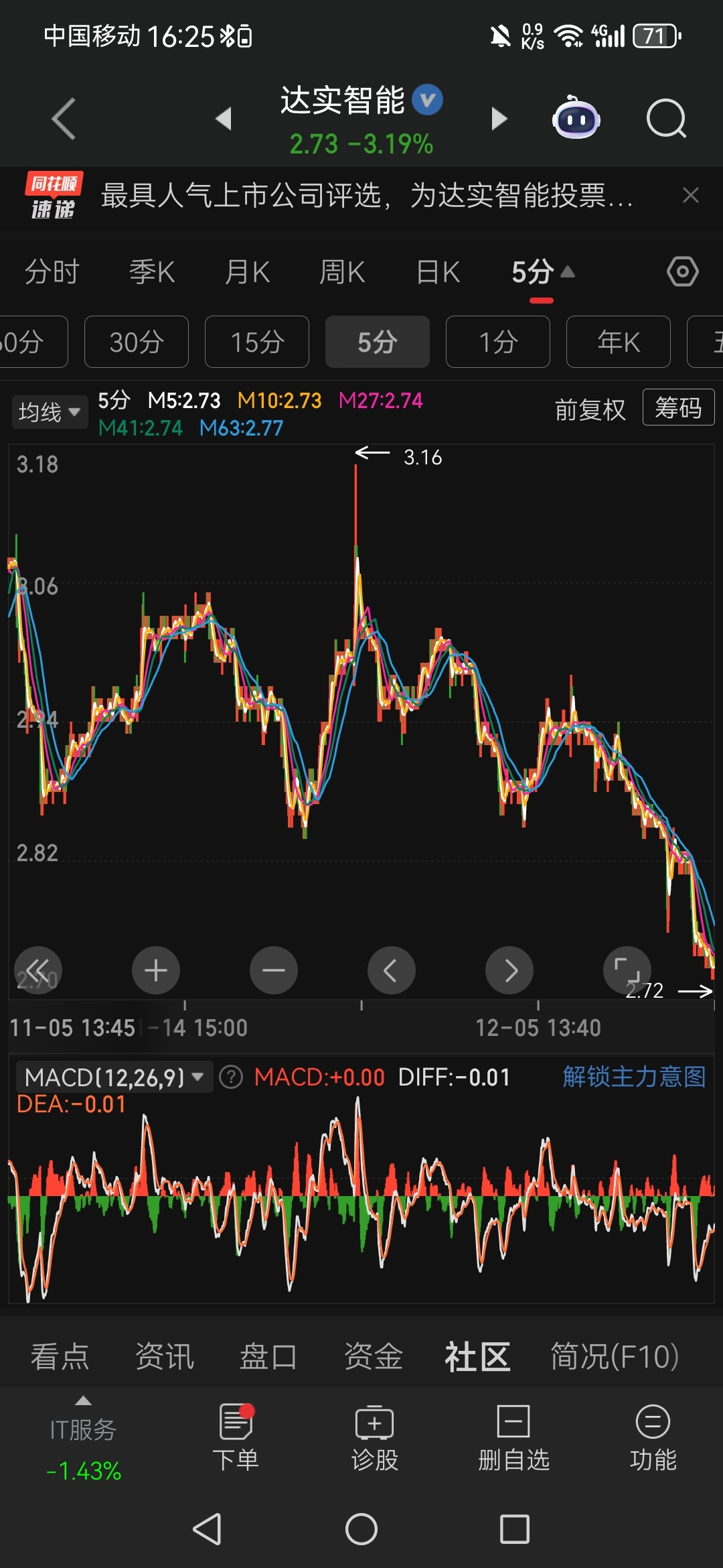 $达实智能(SZ002421)$ 2.72买入了,上午挂单下午成交,,,真高兴,不喜欢别喷,有走势为证,关键是得看懂走势结构