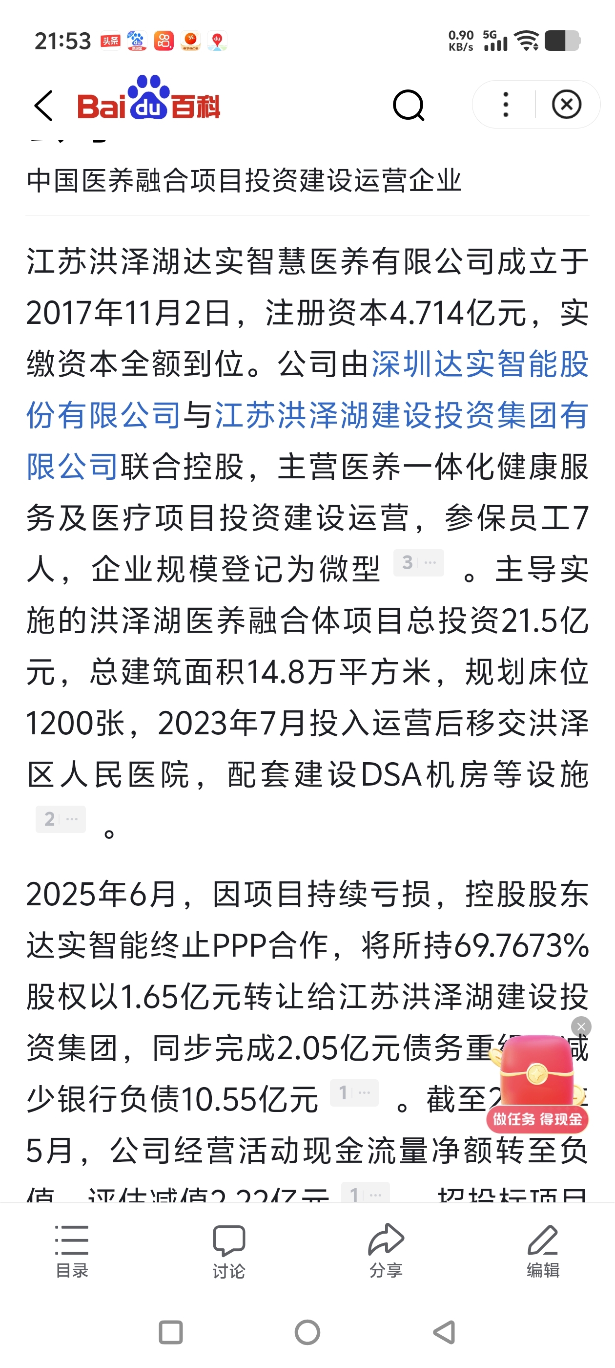 $达实智能(SZ002421)$ 达实亏损的洪泽区医院ppp项目,纳闷的是在土地建材成本很低的地方和时候,建14.8万平米房子,花了21.5亿人民币 ,而在地价的深圳和建材成本高的时候